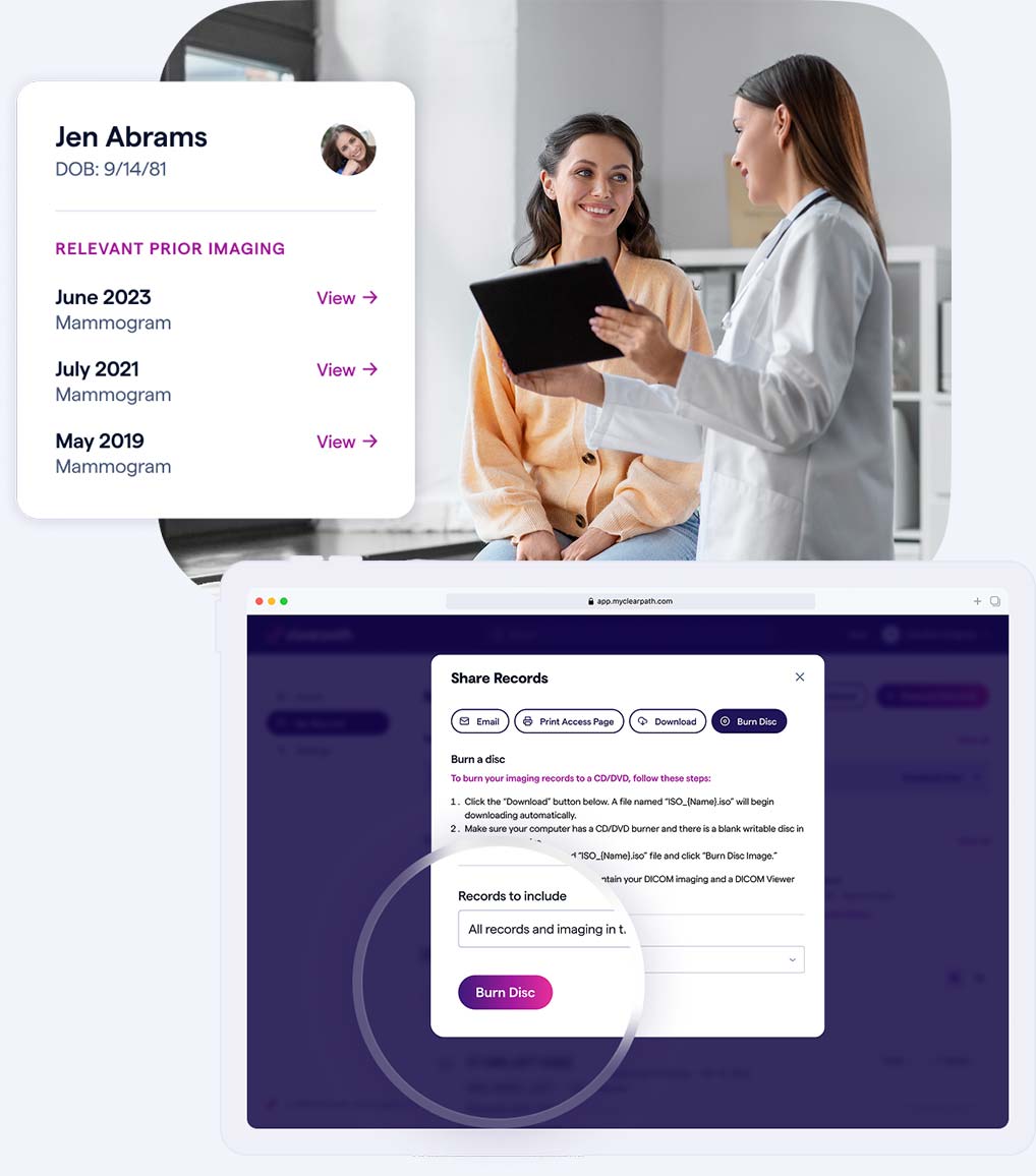 Akumin has partnered with Clearpath to make accessing your medical records and images secure, simple, and convenient. You can easily receive, store, and share your files from your smartphone or computer—anytime, anywhere.
