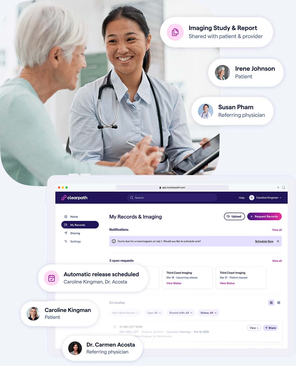 Allow your care team to collaborate efficiently, with imaging studies available when your providers need them.Requesting previous images & reports