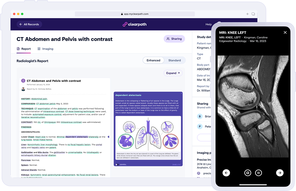 Akumin has partnered with Clearpath to make accessing your medical records and images secure, simple, and convenient. You can easily receive, store, and share your files from your smartphone or computer—anytime, anywhere.
